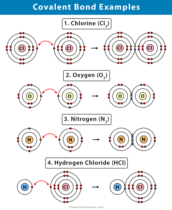 - Single bond (when 1 electron from each atom is shared)