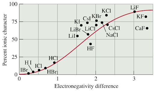 - Differences between 0.5 and 1.8: This difference of electronegativity results in a poler bond; a covalent bond that has a positive end and a negative end.