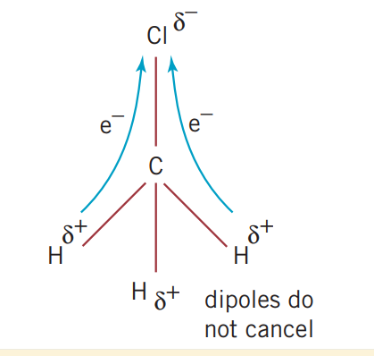 However, in the case of chloromethane, , there is a significantly larger pull towards the atom. It has a similar molecular structure to methane, however, due to the difference of electronegativity in the bond, being grater than that of , the overall polarity is towards the atom.