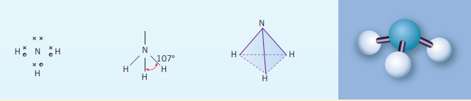 These bonds are a result of the central atoms having 3 bonding electrons and one lone pair. However, it does have a similar general formula to the trigonal planar, , but because there is a lone pair, the X-A-X bonds will have a bonding angle . For example, in an ammonia molecule, , nitrogen only needs to bond with three other atoms (single bonds) to have a complete octet. But due to nitrogen’s lone pair the bonds get ‘pushed down. The shape is similar to the tetrahedral shape but without a bond and at a slightly smaller angle. Another example of this kind of bond is .