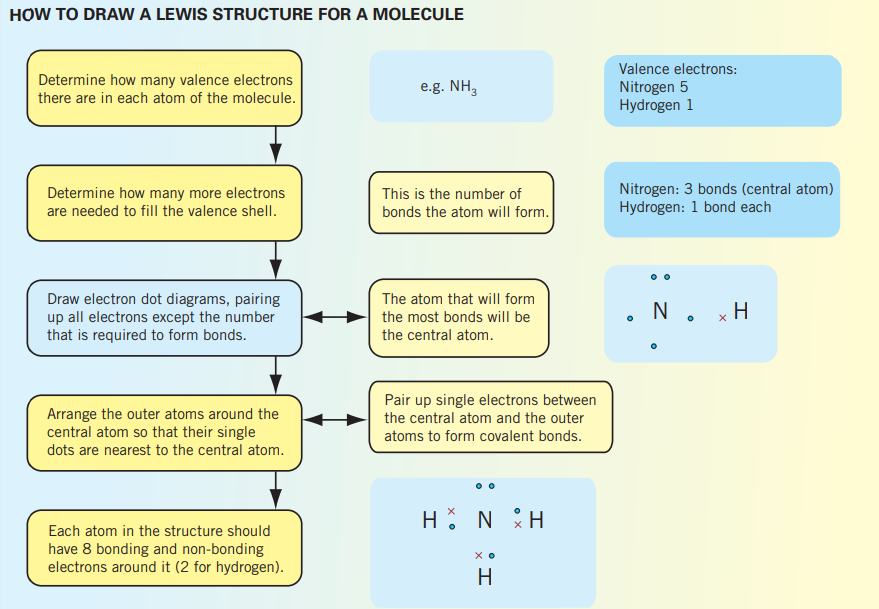 Electron shell, Lewis, electron dot structures and diagrams, can be drawn to represented the electron configuration within an atom; representing its bonds and having all valance electrons represented. Bonds can be represented using dashes or two dots/crosses, where 1 dash is 2 electrons.