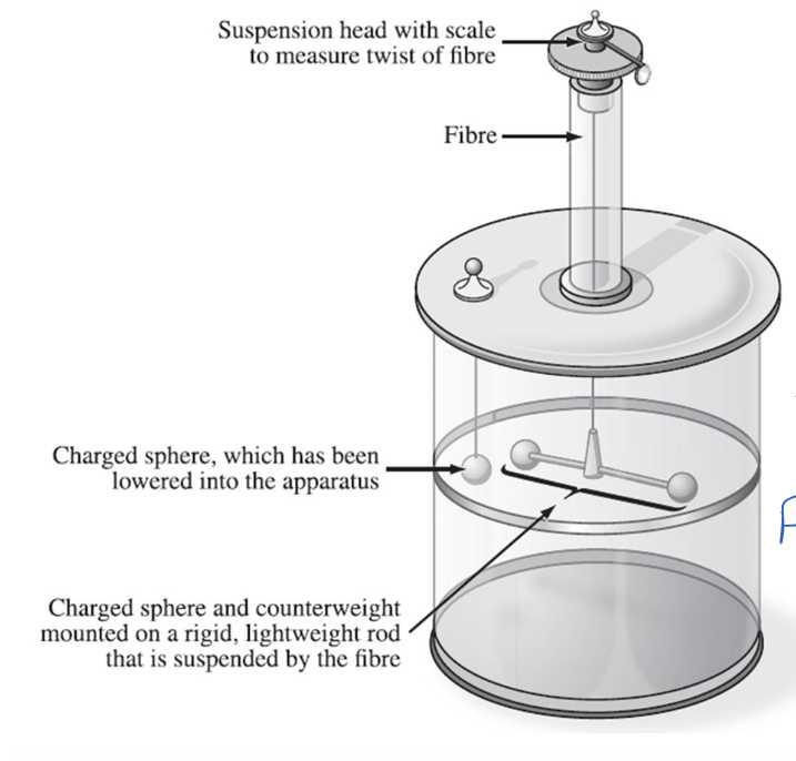 Coulomb’s law is used to measure to electrostatic force between two point charges. This was determined through the usage of a torsion balance similar to Cavendish’s model when investigating gravitational force between two masses. The following equation was determined by determining the proportionality given constant variables: