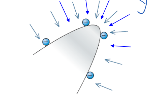 Around an irregularly shaped conductor, the magnetic field strength at a ‘sharp’ point is greater than the surrounding field strength of the object.: