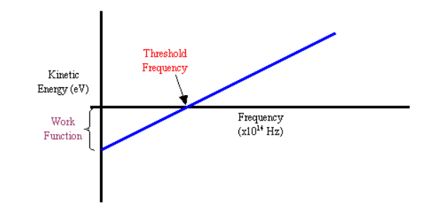 On a plot of the kinetic energy of the electron vs the frequency of the light there is some threshold frequency at which electrons begin to be emitted.