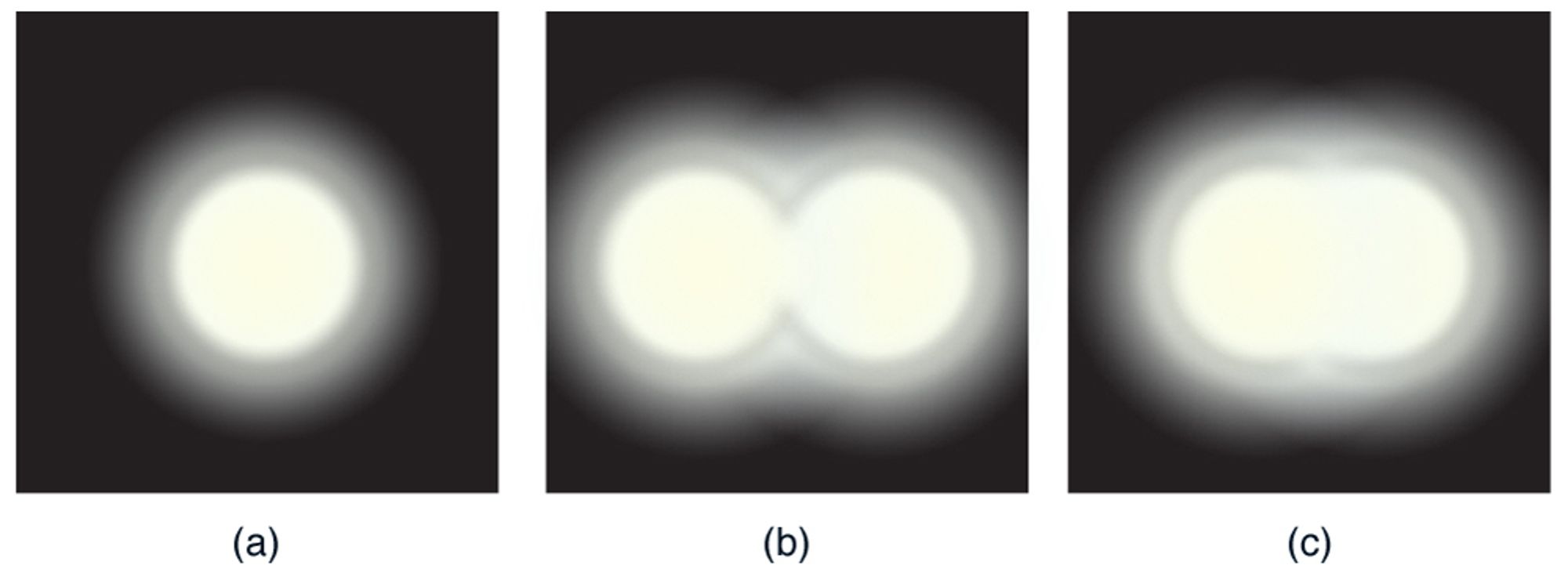 Consider the diffraction pattern of two light beams diffracted by a single slit. These patterns can be categorized as resolved, just resolved, or not resolved depending on the separation between the images.