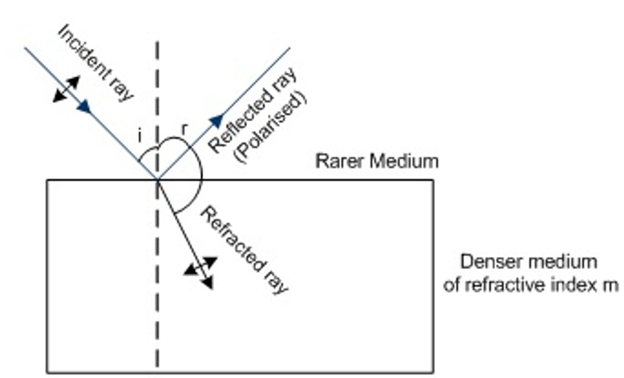 When the angle of incidence is equal to Brewsterâs angle, the reflected ray is totally polarized and the reflected ray is perpendicular to the refracted ray.