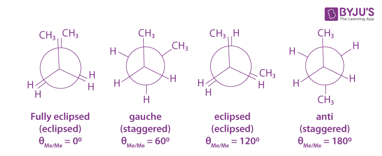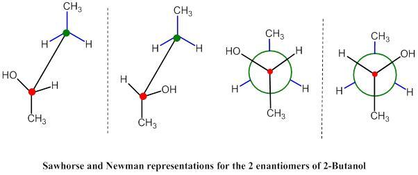 The diagram on the left is a seesaw diagram, whereas the one on the right is a Newman diagram. Newman diagrams will be used to express fully eclipsed, gauche, eclipsed and anti-staggered conformations.