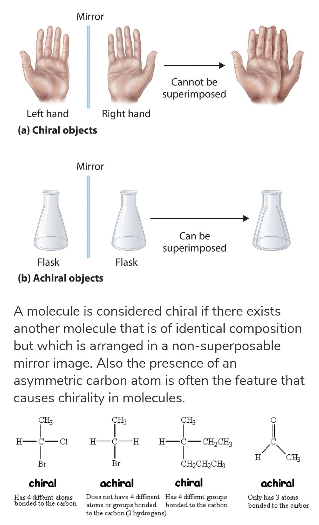 To determine whether or not an optical isomer is an enantiomer or a diastereomers, check the chirality of the molecule. Chirality can be determined by looking at the reflection. If the reflection can be superimposed (can be placed on top of each other or eclipsed) then the molecule is achiral. If the mirror image cannot be superimposed, then it is chiral. Some examples of chiral vs. achiral objects: