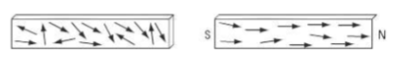- Soft iron demagnetizes almost instantly while hard steel to alloys seem to âlockâ the aligned domains in position.