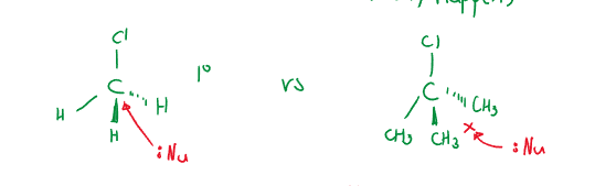 These reactions happen at different rates for different substrates: , where happens so slowly, it is negligible. This is because substrates have a less electron dense backside, allowing for better attacks.