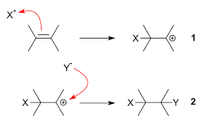 Reactants are classified as electrophiles or nucleophiles. In general, electrophilic addition is the process of a double bond turning into a single bond with some other diatomic molecule added.