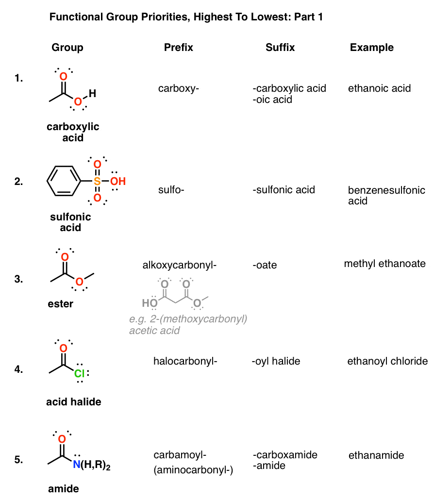The Lewis definition of functional group priority makes the ‘most acidic’ have the greatest priority: