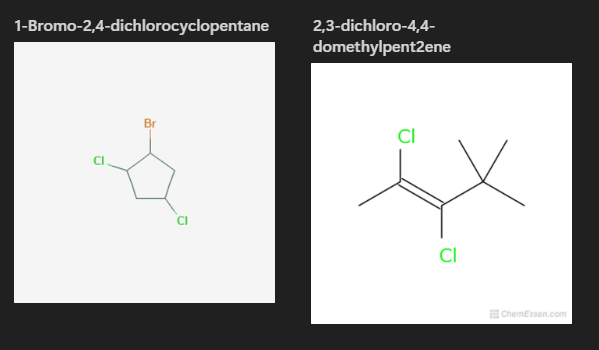 These are organic compounds that have one or more hydrogen branches replaced by a halide. These only exist as branches and they do not modify the parent name. In general, these compounds are toxic. Polarity and solubility both greatly vary.