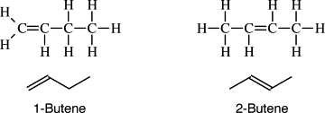 If butene had a double bond at the first carbon, it would be written as: but-1-ene.