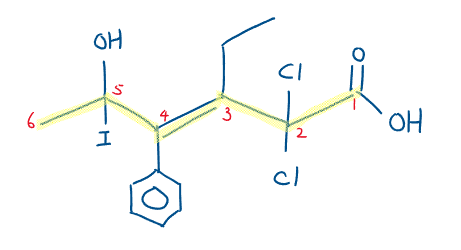 - Determine the longest chain of carbon.