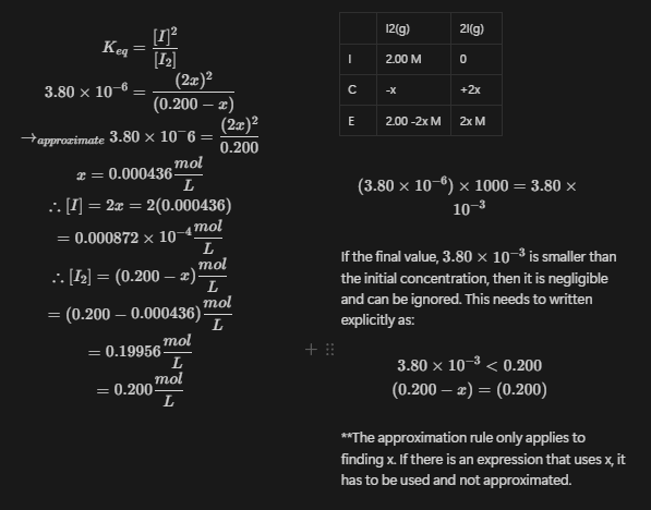If the initial concentration is greater than , then we can ignore the change that is happening to the initial concentration. This CANNOT be graphed when solving problems (for reasons :)) The application of this can be seen in the following example.