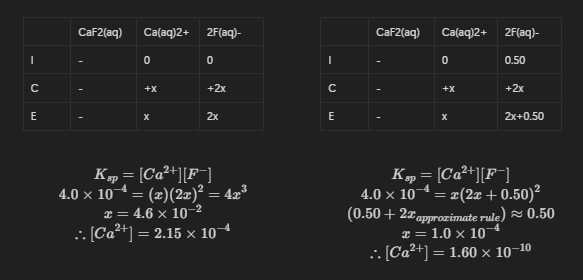 Comparing the concentrations of ion when there is an initial concentration of fluorine is above 0, the consequence is that the Calcium will not dissociate as well.