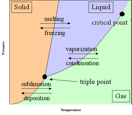 The graph to the right communicates that a phase change may occur due to an increase in temperature or an increase in pressure.