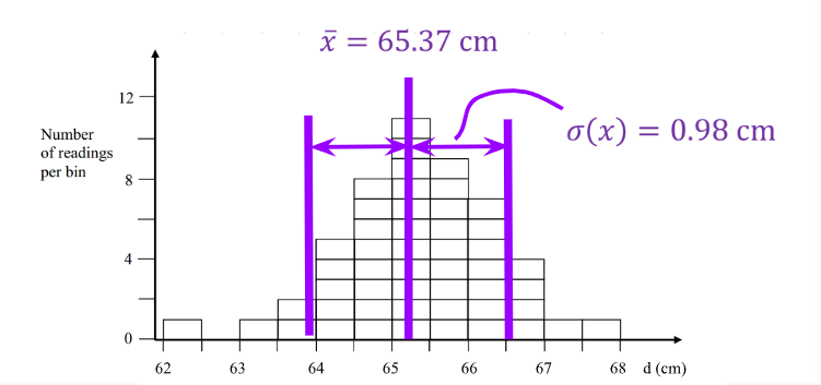 Where is the number of times the measurement is taken, and is the value of the measurement. These can be used to find the standard deviation (describing how narrow/wide the distribution is).