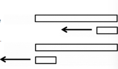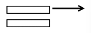 From the frame of reference of the top object, the top object will be observed to be longer because the observers in the other frame are seeing its contracted length. Contrarily, the length of the bottom object will be shorter as it is now the one “moving” in the frame of the top object. This contracts it. From the frame of the top object, the image looks like this: