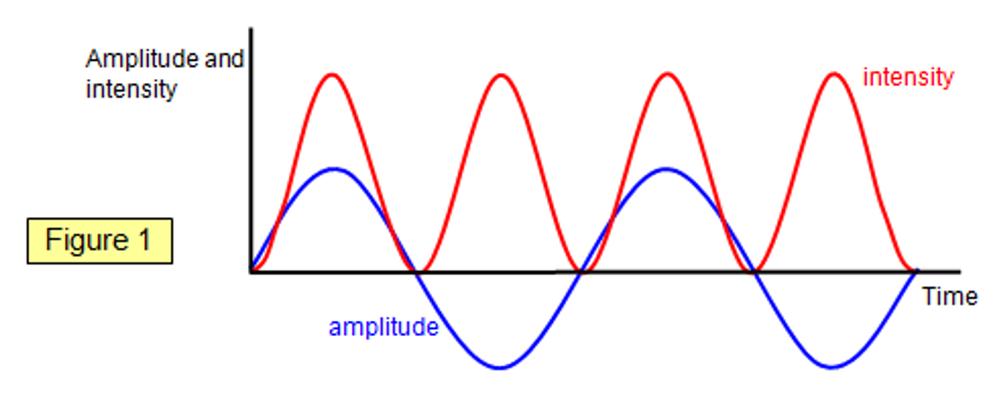 The amplitude and intensity of a wave depends on its energy. The intensity of a wave is proportional to the square of its amplitude (I∝A^2).