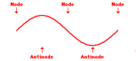 Positions along the wave which are fixed are called nodes (minimum) and those with the largest displacement are called antinodes (maximum). For standing waves, the distance between adjacent nodes = the distance between adjacent antinodes = Îť/2.