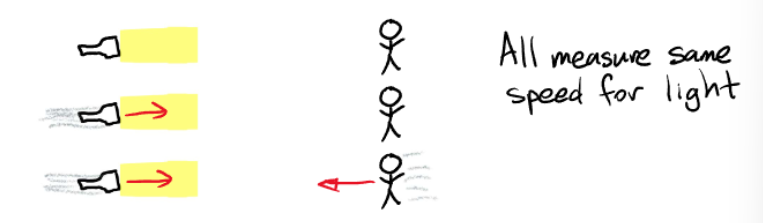 For ordinary scenarios, according to the principle of relativity, all three scenarios measure the same speed of light:
