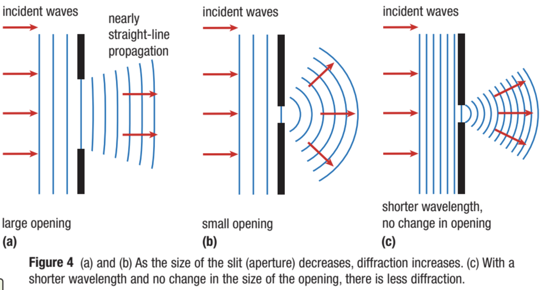 For this to be observed, the ratio of wavelength to slit ratio must be in a specific range: Diffraction of waves can only occur is the gap is narrow enough, and light (390-770nm) can only be diffracted with a narrow enough slit: