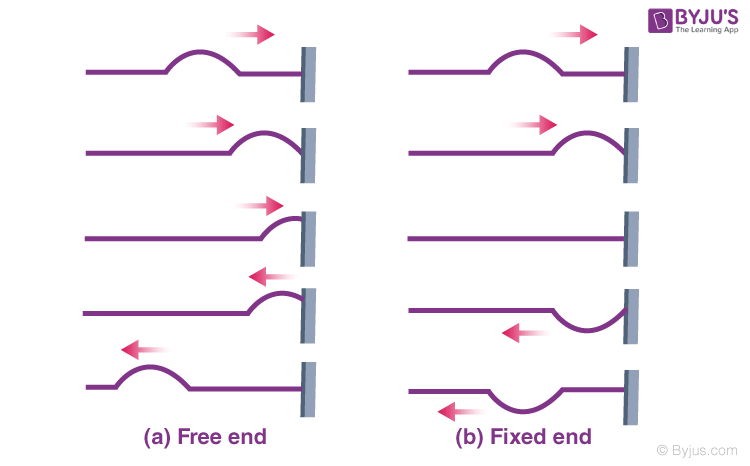 Angle of incidence = Angle of reflection. Reflection of waves from a fixed end is inverted.